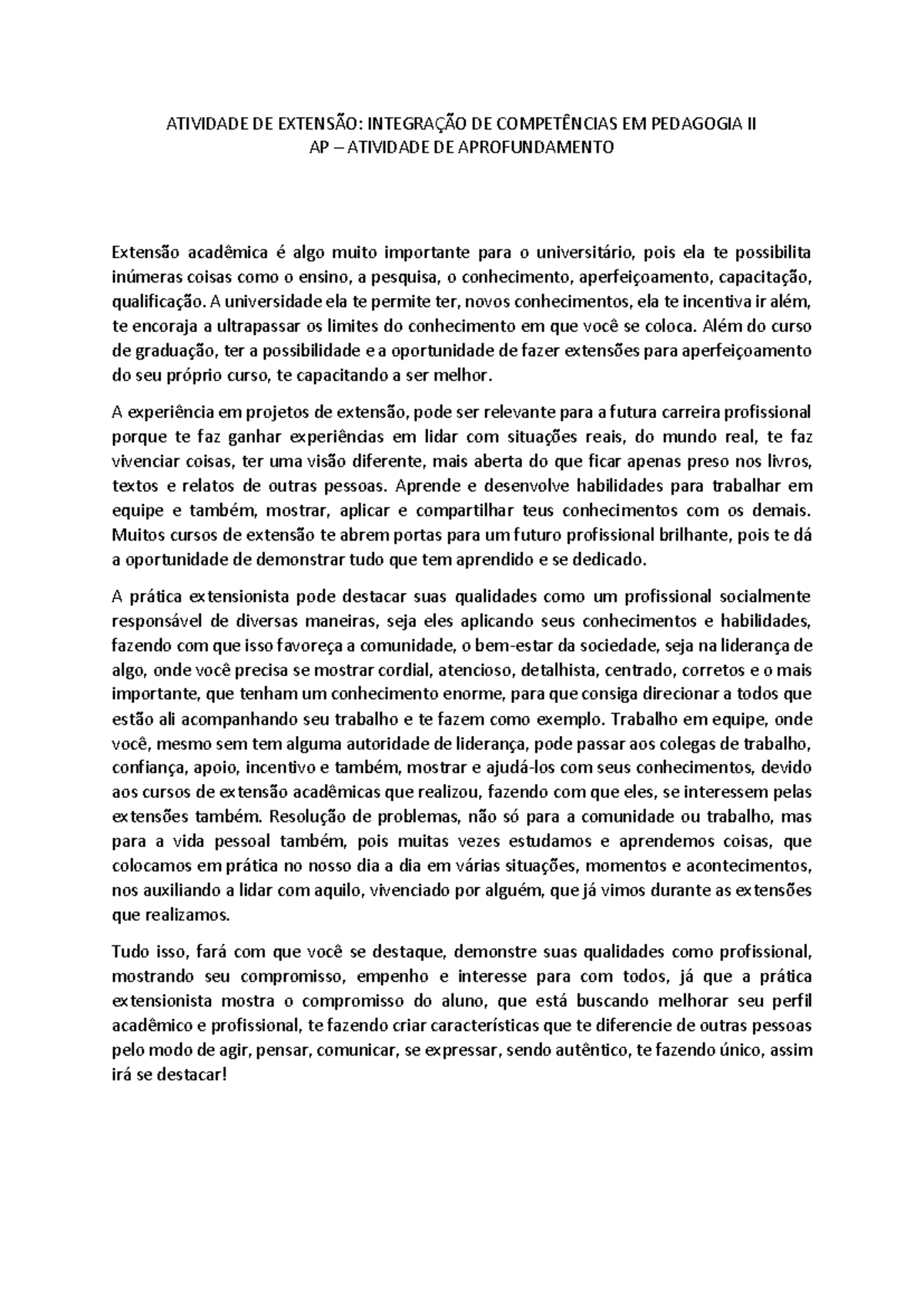 Asatividadesdeextensãosão fundamentaisparaa formação integral dos estudantes, promovendo aintegraçãodecompetênciasque visamtransformarnão apenasoindivíduo, mas também a coletividade e a sociedade como um todo.