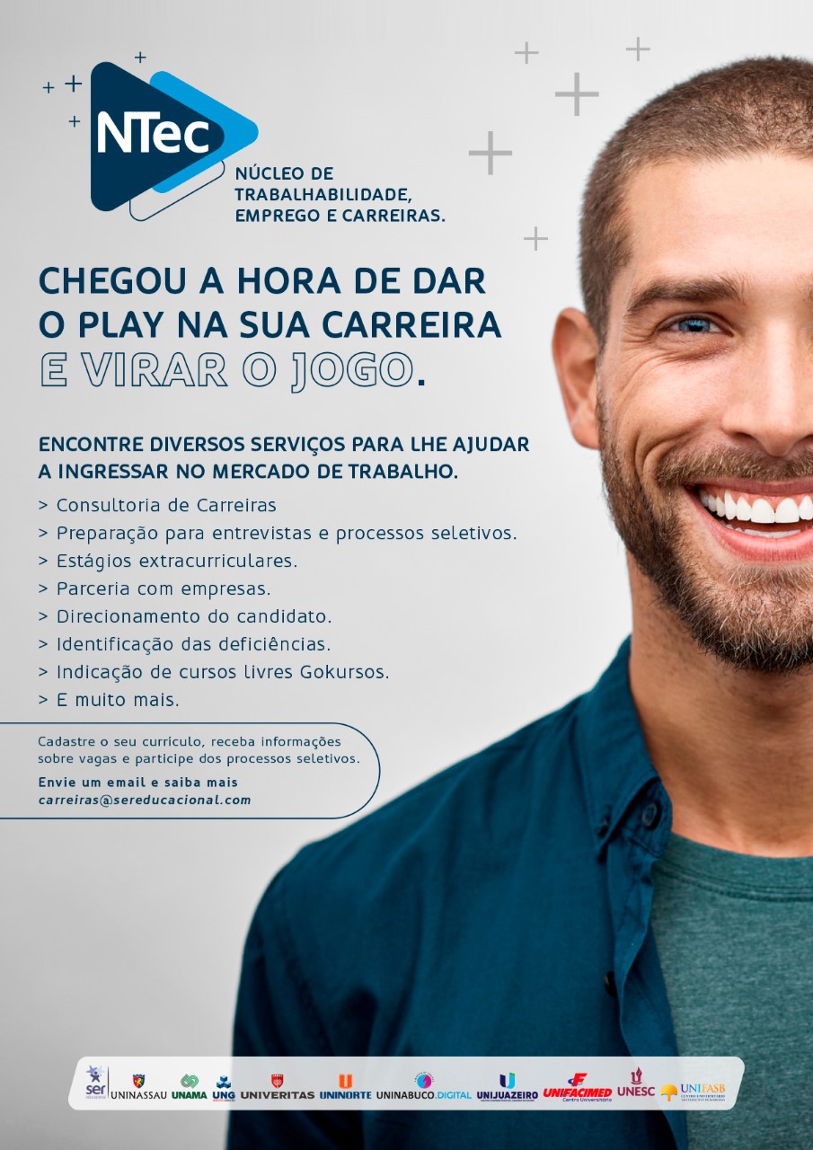 ONúcleodeTrabalhabilidade, Empregos e Carreiras (NTEC) da UNINASSAU oferece apoio aos alunos e egressos nas buscas por vagas, currículos, entrevistas e concursos. Saiba mais sobreofuncionamento,osparceiros e as vantagens desseserviçoexclusivo do Ser Educacional.