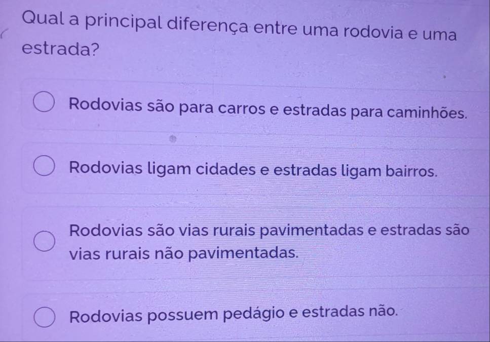 Resolvido:Qual a principal diferença entre uma rodovia e uma estrada